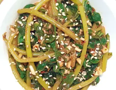 줄기와 잎을 같이 요리해 잎은 부드럽고 줄기는 아삭한 두 가지 식감을 같이 즐길 수 있다.
